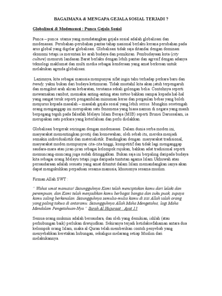GEJALA SOSIAL ~ zana:the:trainer from 4.bp.blogspot.com Selain kempen yang berterusan, pihak berkuasa hendaklah menguatkuasakan peraturan pada setiap masa tanpa memilih bulu. Tapak karangan bahasa melayu 2,contoh ulasan punca gejala sosial dalam kalangan remaja and more. Mengapa gejala sosial sering berlaku? Kesimpulannya, terdapat beberapa sebab berlakunya gejala sosial di kalangan remaja. Contoh karangan punca punca gejala sosial di kalangan remaja remaja merujuk golongan yang berumur belasan tahun dan belum bekerja atau masih bersekolah. Apakah peranan ibu bapa dalam menangani gejala sosial? Antara punca berlakunya gejala rasuah termasuklah kurangnya didikan agama dan moral. Pengaruh rakan sebaya adalah salah satu perkara yang menjadi punca berlakunya gejala sosial.
