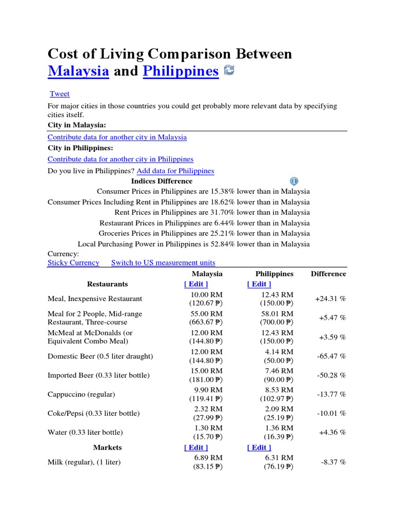 We are giving a details cost of we are almost sure that malaysia is a country that has lower cost of living than the one you reside in right now.